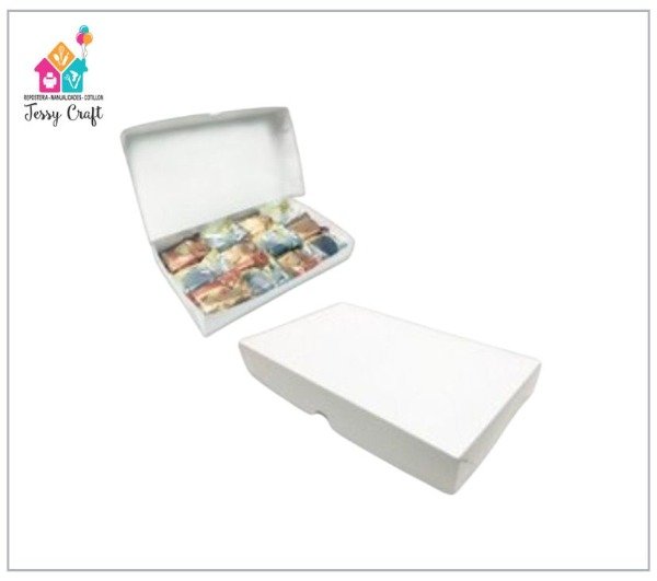 Caja Base y Tapa en 1 pieza Para Alfajores Grande (para 12 o 24 según tamaño del producto). Cartulina Blanca