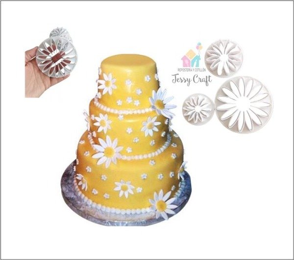 Set de 3 cortantes de plástico para realizar Flores Margarita en 3 tamaños.