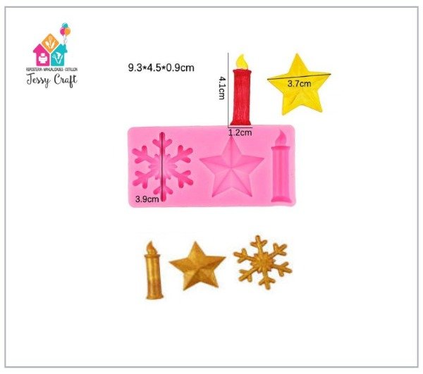 Molde de Silicona - Copo de Nieve,Vela y Estrella, Cod. BM3007